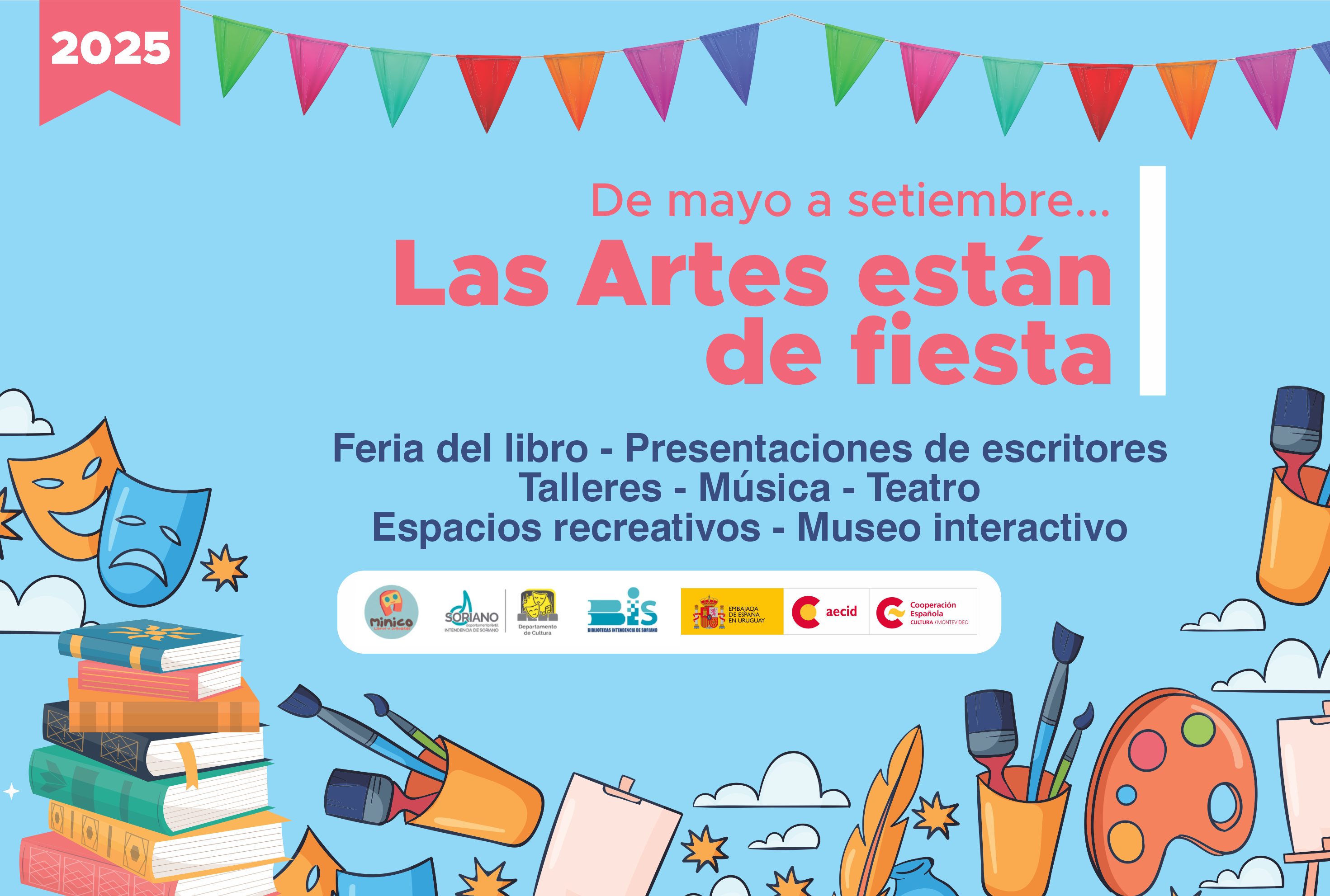“Las Artes están de Fiesta” es una innovadora propuesta cultural itinerante que, desde mayo y hasta setiembre, recorre diferentes localidades de Soriano, desarrollando una una interesante gama de actividades: exposiciones, talleres, presentaciones de escritores, feria de libros, música, dibujos y …..